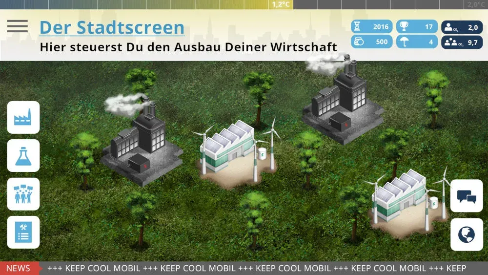 In „KEEP COOL mobil“ übernimmst du die Führung einer Großstadt und entwickelst deine Wirtschaft weiter, um Punkte zu sammeln. Du hast dabei ständig die Wahl: