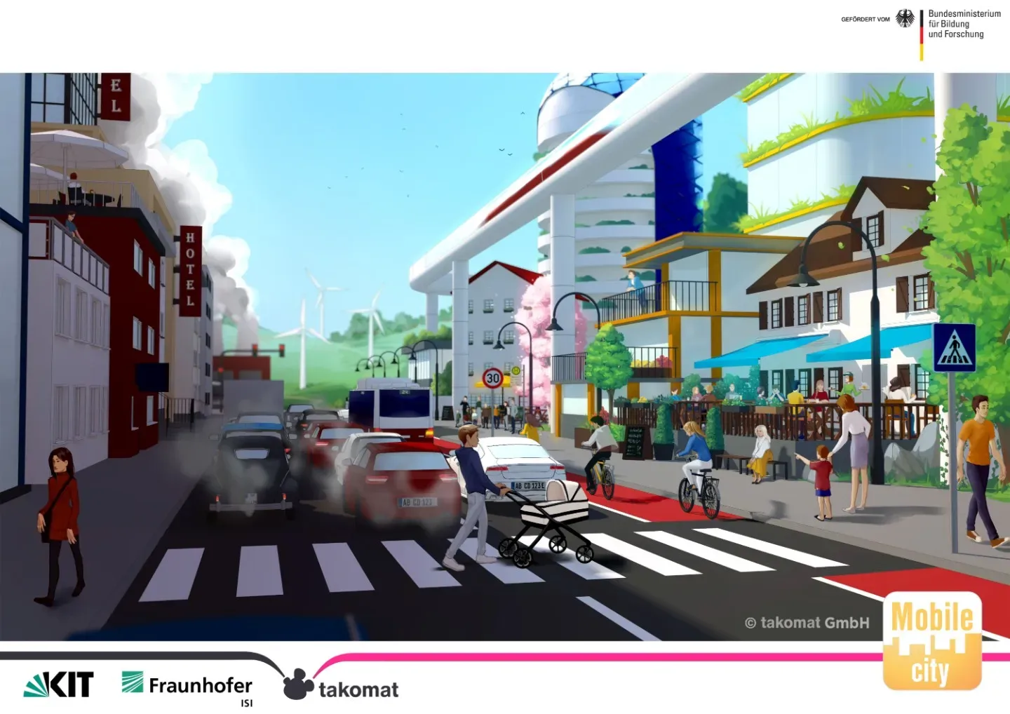 Die Mobile City-App ist ein wissenschaftlich fundiertes Mobilitäts-Spiel, in dem du ausprobierst, wie ein ökologisch und finanziell nachhaltiges städtisches Mobilitätssystem bis 2050 aussehen kann. Du entscheidest über Maßnahmen der Verkehrswende – und siehst direkt, wie sich deine Entscheidungen auf Klima/Umwelt, Lebensqualität und den kommunalen Haushalt auswirken.