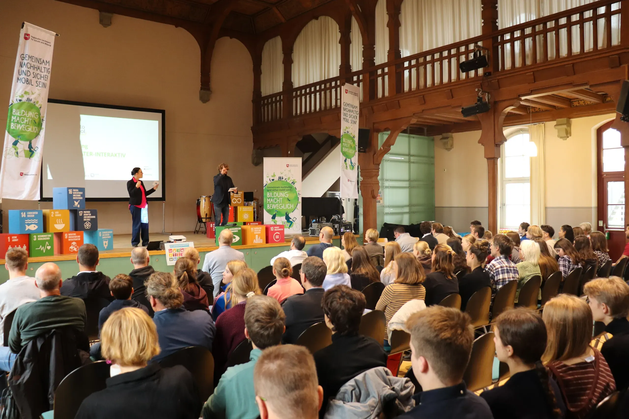 Die Veranstaltung begann mit einem interaktiven Theaterstück, das auf lebendige Weise in das Thema Mobilität einführte. Im Anschluss begrüßte die Schulleitung der Lutherschule die Teilnehmenden. Mit einem engagierten Impulsbeitrag setzten Matteo Feind, Marie Sievers und Otto Ellerbrock vom Vorstand des Landesschüler:innenrates wichtige inhaltliche Akzente zur Bedeutung nachhaltiger Mobilität im Schulalltag. Ergänzt wurde das Programm durch einen kurzen Einblick in die Ergebnisse einer Umfrage zur Schulwegsicherheit – vorgestellt von Herrn Sievers, Mitglied im Landeselternrat, in Kooperation mit der Leuphana Universität.