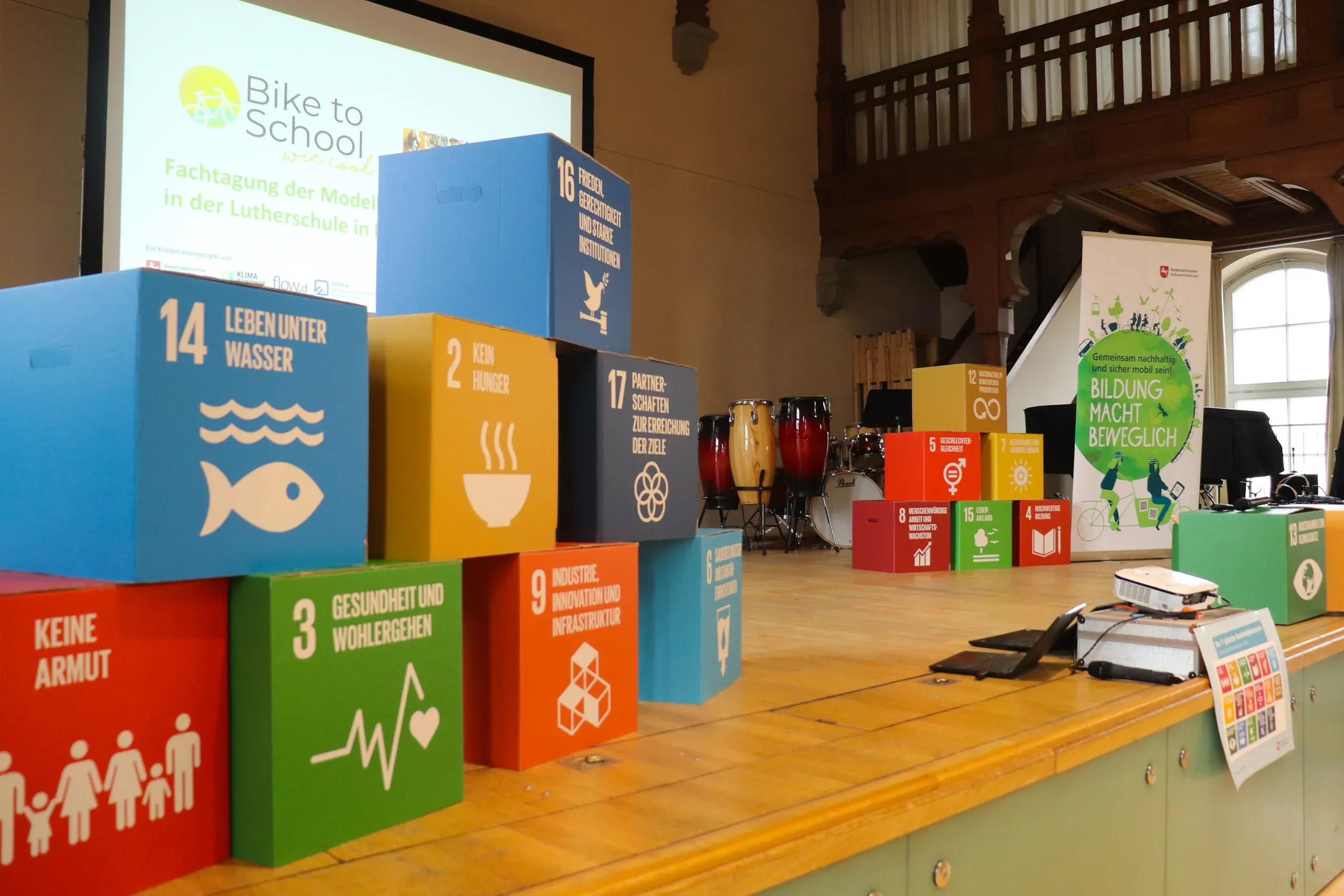 Im Rahmen des „Markts der Möglichkeiten“ präsentierten sich vielfältige Initiativen und Projekte rund um nachhaltige Mobilität. Vorgestellt wurden unter anderem die Arbeit von Bike to School sowie inspirierende Projekte aus den teilnehmenden Modellschulen. Zwei eindrucksvolle Fotoausstellungen, Click & Bike/Ride der Lutherschule und der Renataschule, gaben persönliche Einblicke in Mobilitätsperspektiven von Schüler:innen. Ergänzt wurde das Angebot durch Informationsstände des Klima-Bündnisses und des Projekts Flow.D, die weitere Impulse für klimafreundliches Handeln lieferten.
